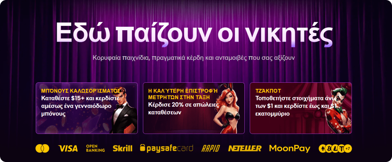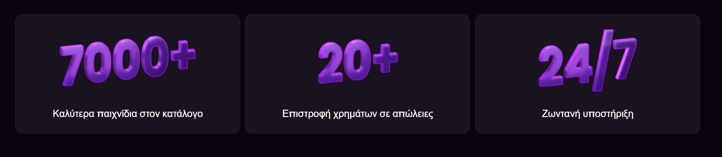 Η υποστήριξη πελατών λειτουργεί 24/7 μέσω live chat και email. Η ομάδα είναι γρήγορη, επαγγελματική και πολύγλωσση. Υπάρχει επίσης εκτενές FAQ για συχνές απορίες σχετικά με λογαριασμό, μπόνους και αναλήψεις.